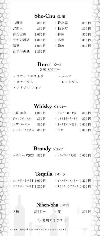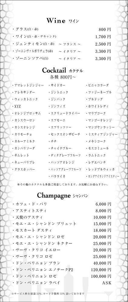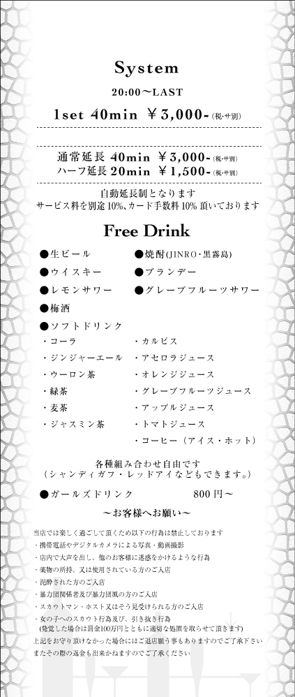 20:00~LAST [1SET] 40分 3,000円(税・サ別)
